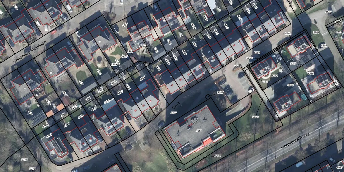 Het perceel waarop Gruit 24 staat heeft een oppervlakte van 253 m². Dit is een middelgroot perceel. De perceeloppervlakte wordt geregistreerd door het Kadaster. Gedetailleerde informatie over de maten van dit perceel kunt u vinden in het rapport Kadastrale kaart met maatvoering van Gruit 24.