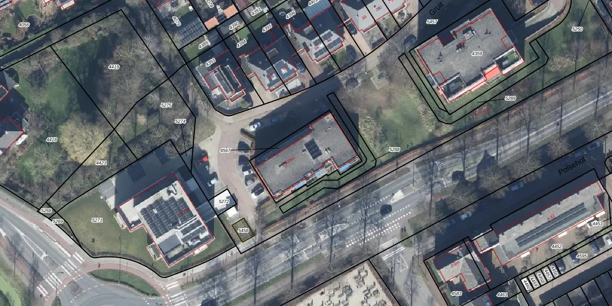 Het perceel waarop Gruit 25-b staat heeft een oppervlakte van 547 m². Dit is een groot perceel. De perceeloppervlakte wordt geregistreerd door het Kadaster. Gedetailleerde informatie over de maten van dit perceel kunt u vinden in het rapport Kadastrale kaart met maatvoering van Gruit 25-b.