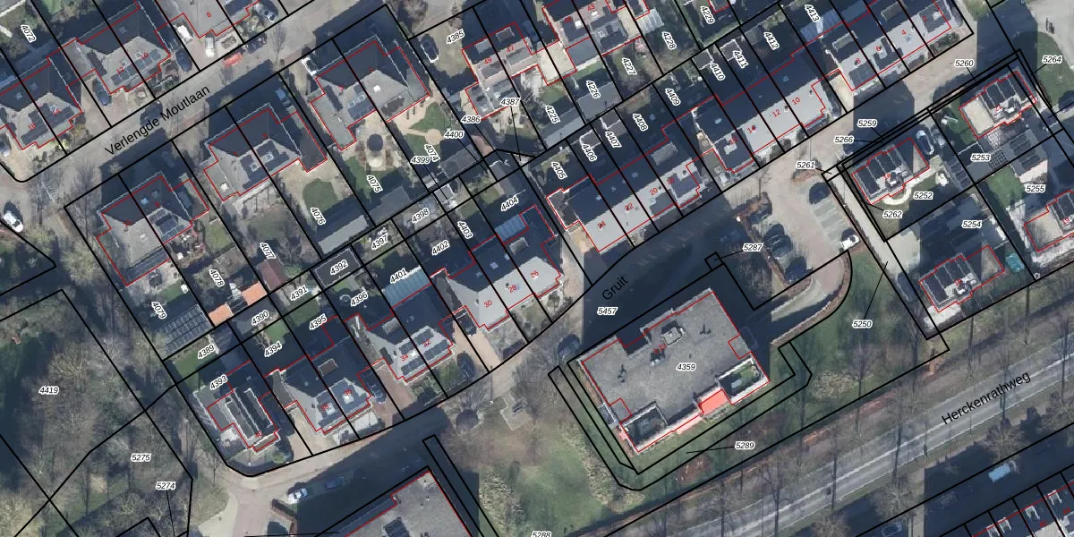 Het perceel waarop Gruit 26 staat heeft een oppervlakte van 275 m². Dit is een middelgroot perceel. De perceeloppervlakte wordt geregistreerd door het Kadaster. Gedetailleerde informatie over de maten van dit perceel kunt u vinden in het rapport Kadastrale kaart met maatvoering van Gruit 26.