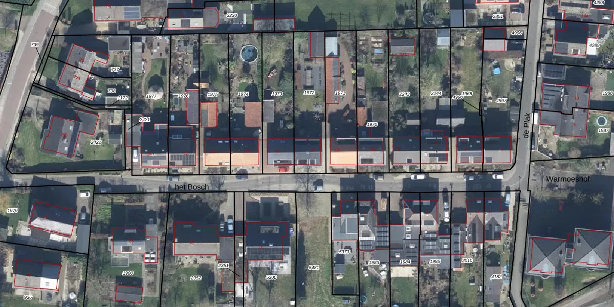 Het perceel waarop het Bosch 14 staat heeft een oppervlakte van 468 m². Dit is een groot perceel. De perceeloppervlakte wordt geregistreerd door het Kadaster. Gedetailleerde informatie over de maten van dit perceel kunt u vinden in het rapport Kadastrale kaart met maatvoering van het Bosch 14.