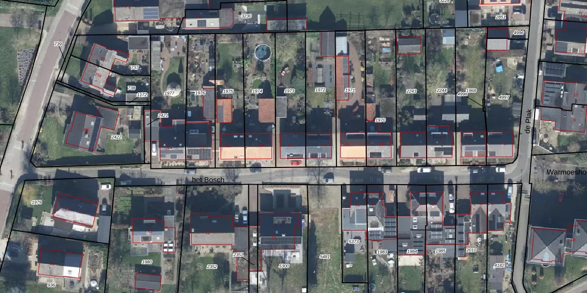 Het perceel waarop het Bosch 16 staat heeft een oppervlakte van 478 m². Dit is een groot perceel. De perceeloppervlakte wordt geregistreerd door het Kadaster. Gedetailleerde informatie over de maten van dit perceel kunt u vinden in het rapport Kadastrale kaart met maatvoering van het Bosch 16.