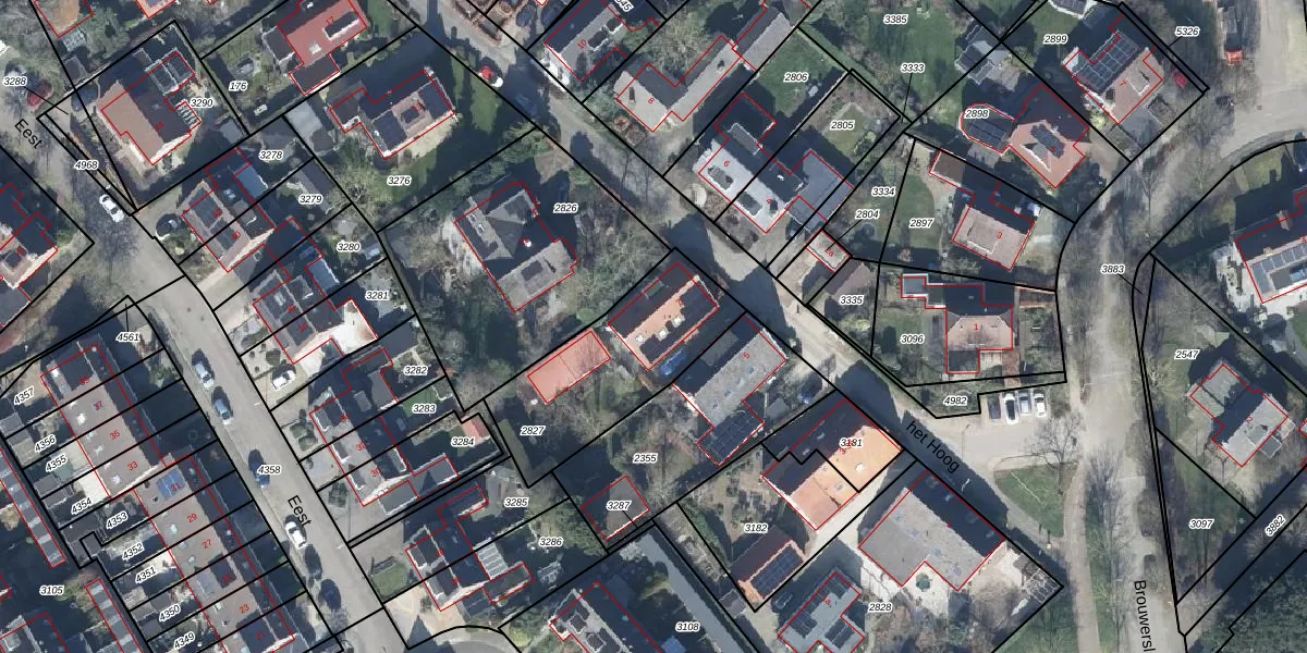 Gebruik de zoekbalk of klik op een perceel voor informatie over de adressen binnen dit perceel.
