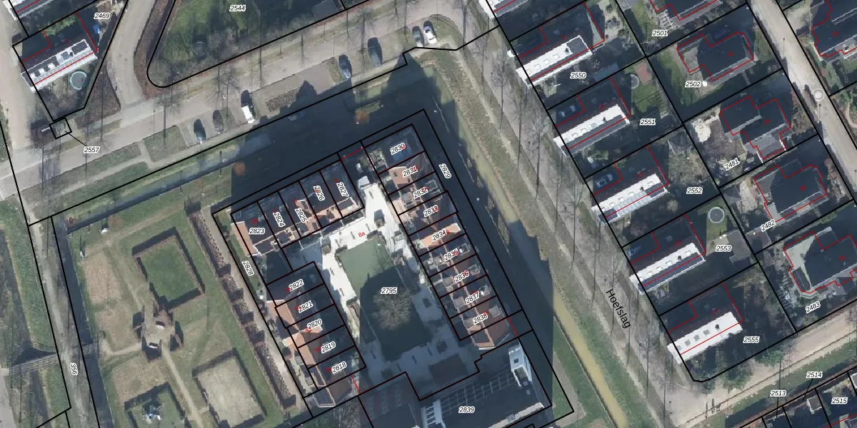 Het perceel waarop Hoefslag 16 staat heeft een oppervlakte van 69 m². Dit is een klein perceel. De perceeloppervlakte wordt geregistreerd door het Kadaster. Gedetailleerde informatie over de maten van dit perceel kunt u vinden in het rapport Kadastrale kaart met maatvoering van Hoefslag 16.