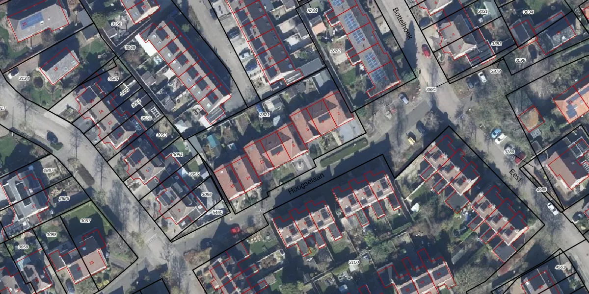 Het perceel waarop Hoogselaan 8 staat heeft een oppervlakte van 1463 m². Dit is een zeer groot perceel. De perceeloppervlakte wordt geregistreerd door het Kadaster. Gedetailleerde informatie over de maten van dit perceel kunt u vinden in het rapport Kadastrale kaart met maatvoering van Hoogselaan 8.