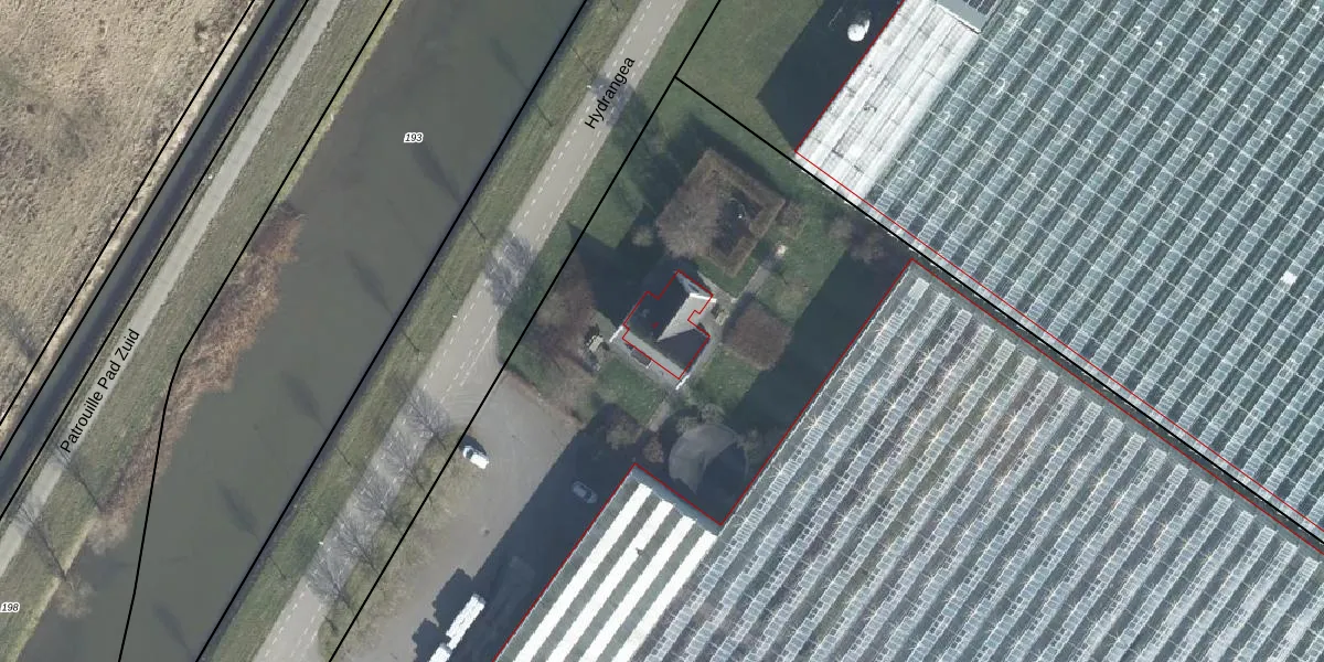 Het perceel waarop Hydrangea 2 staat heeft een oppervlakte van 3,2 ha. Dit is een zeer groot perceel. De perceeloppervlakte wordt geregistreerd door het Kadaster. Gedetailleerde informatie over de maten van dit perceel kunt u vinden in het rapport Kadastrale kaart met maatvoering van Hydrangea 2.