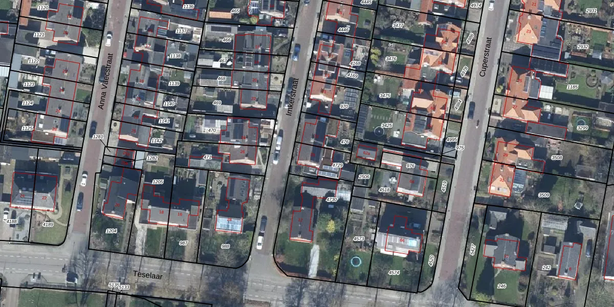 Het perceel waarop Imkerstraat 25 staat heeft een oppervlakte van 205 m². Dit is een middelgroot perceel. De perceeloppervlakte wordt geregistreerd door het Kadaster. Gedetailleerde informatie over de maten van dit perceel kunt u vinden in het rapport Kadastrale kaart met maatvoering van Imkerstraat 25.