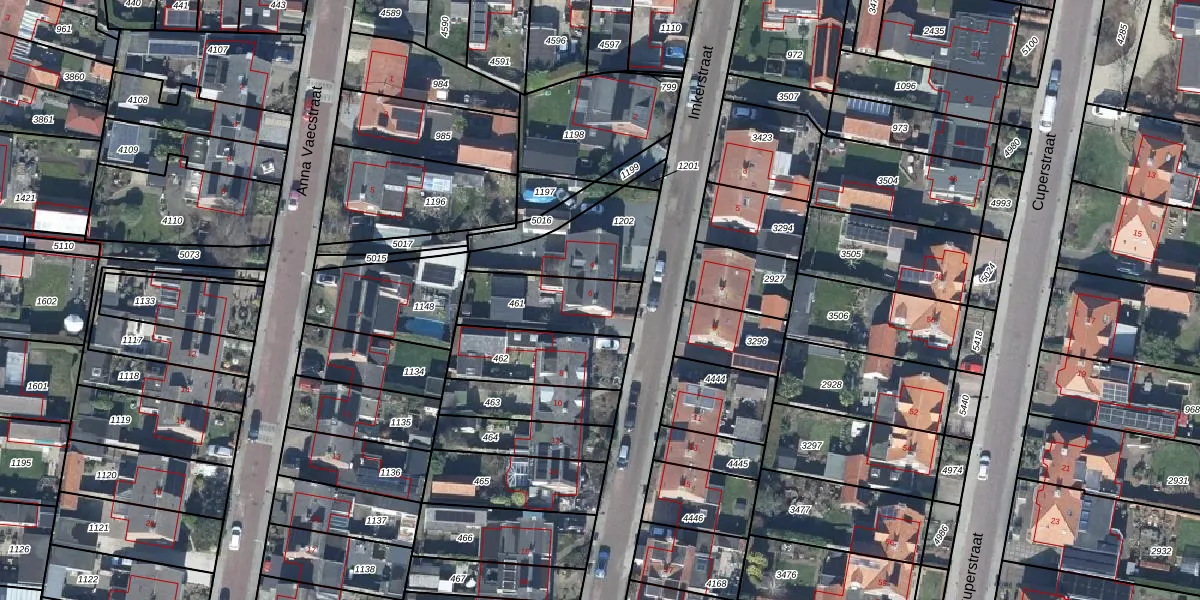 Gebruik de zoekbalk of klik op een perceel voor informatie over de adressen binnen dit perceel.