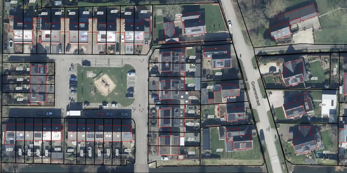 Het perceel waarop Junoplein 12 staat heeft een oppervlakte van 240 m². Dit is een middelgroot perceel. De perceeloppervlakte wordt geregistreerd door het Kadaster. Gedetailleerde informatie over de maten van dit perceel kunt u vinden in het rapport Kadastrale kaart met maatvoering van Junoplein 12.