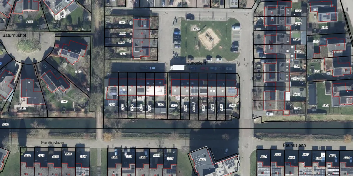 Het perceel waarop Junoplein 13 staat heeft een oppervlakte van 198 m². Dit is een middelgroot perceel. De perceeloppervlakte wordt geregistreerd door het Kadaster. Gedetailleerde informatie over de maten van dit perceel kunt u vinden in het rapport Kadastrale kaart met maatvoering van Junoplein 13.
