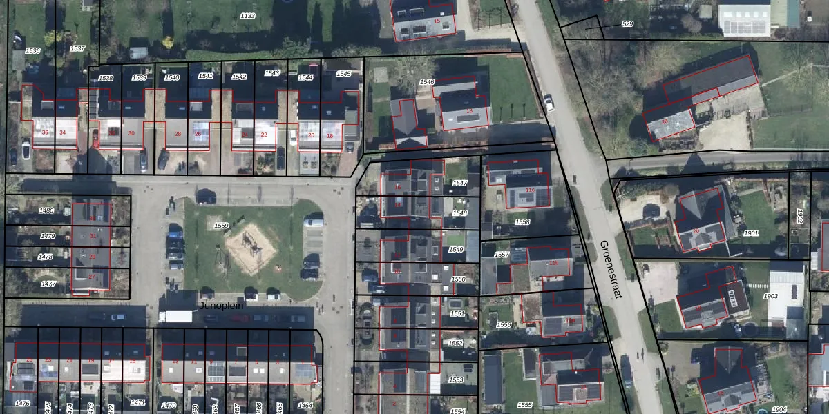 Het perceel waarop Junoplein 14 staat heeft een oppervlakte van 240 m². Dit is een middelgroot perceel. De perceeloppervlakte wordt geregistreerd door het Kadaster. Gedetailleerde informatie over de maten van dit perceel kunt u vinden in het rapport Kadastrale kaart met maatvoering van Junoplein 14.