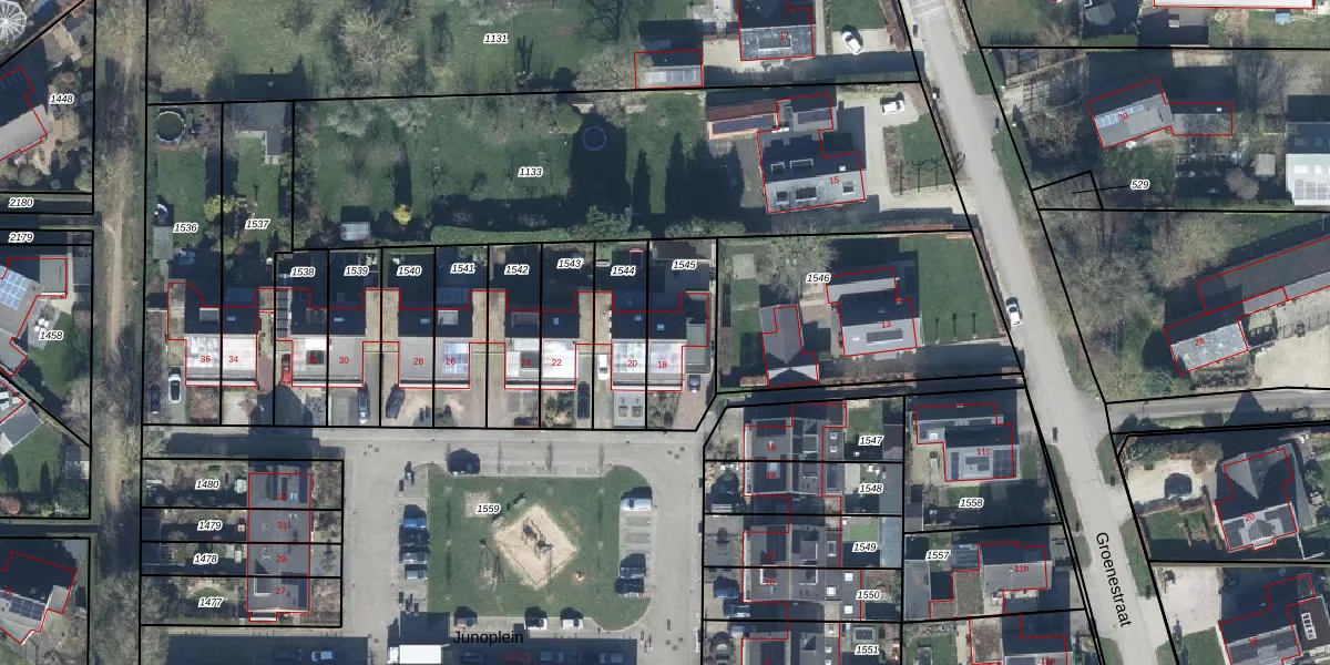 Het perceel waarop Junoplein 18 staat heeft een oppervlakte van 295 m². Dit is een middelgroot perceel. De perceeloppervlakte wordt geregistreerd door het Kadaster. Gedetailleerde informatie over de maten van dit perceel kunt u vinden in het rapport Kadastrale kaart met maatvoering van Junoplein 18.