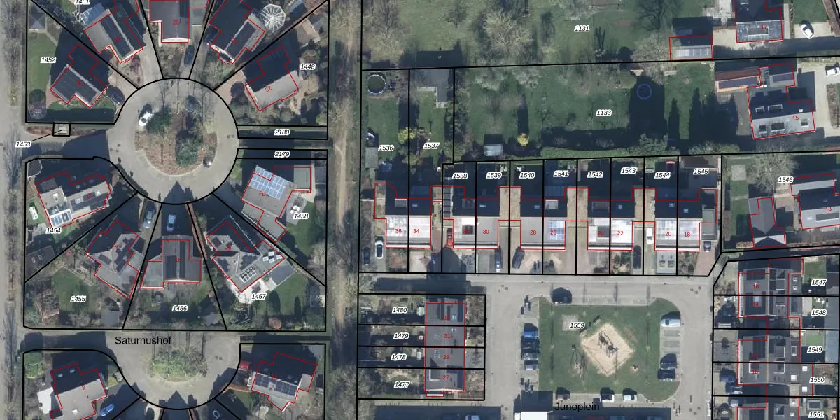 Het perceel waarop Junoplein 34 staat heeft een oppervlakte van 455 m². Dit is een groot perceel. De perceeloppervlakte wordt geregistreerd door het Kadaster. Gedetailleerde informatie over de maten van dit perceel kunt u vinden in het rapport Kadastrale kaart met maatvoering van Junoplein 34.
