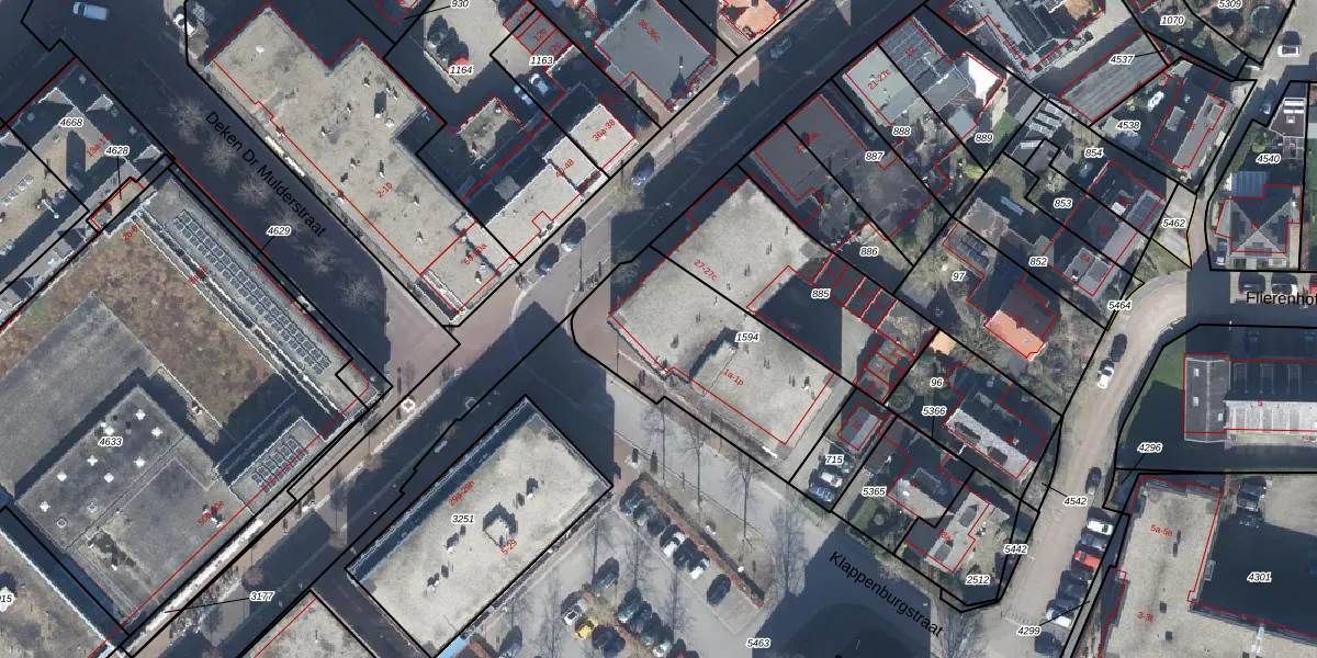 Het perceel waarop Klappenburgstraat 1-f staat heeft een oppervlakte van 737 m². Dit is een groot perceel. De perceeloppervlakte wordt geregistreerd door het Kadaster. Gedetailleerde informatie over de maten van dit perceel kunt u vinden in het rapport Kadastrale kaart met maatvoering van Klappenburgstraat 1-f.