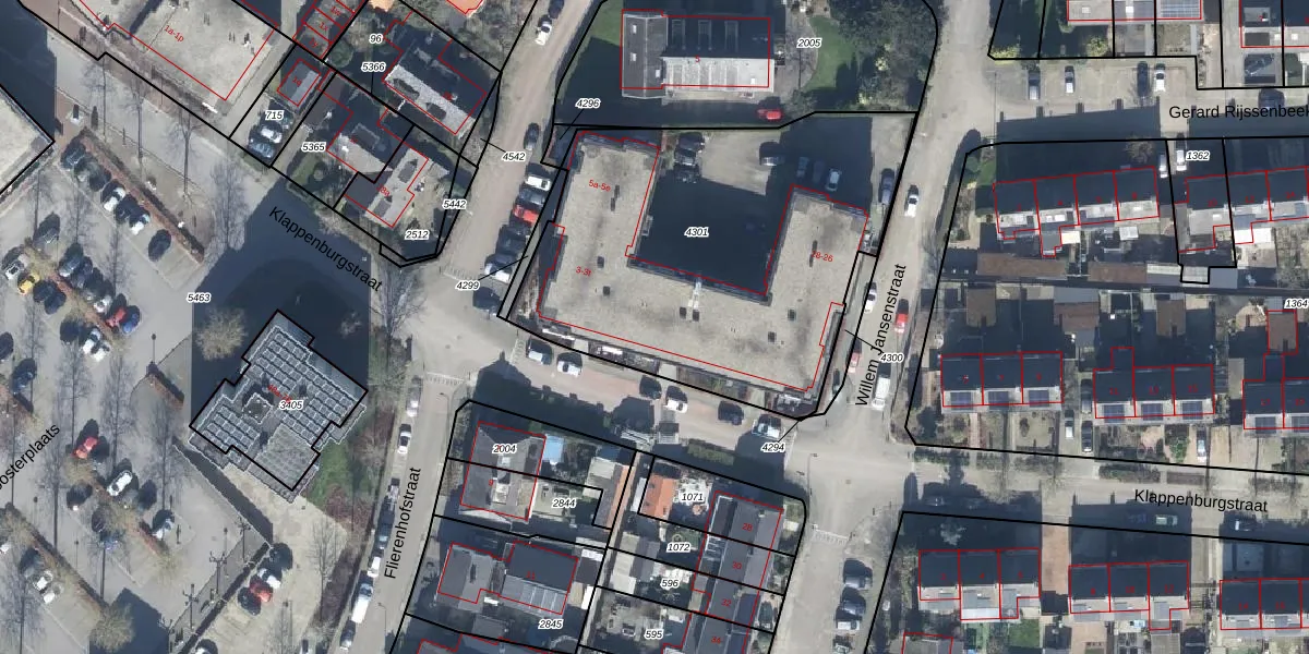 Het perceel waarop Klappenburgstraat 3-f staat heeft een oppervlakte van 1975 m². Dit is een zeer groot perceel. De perceeloppervlakte wordt geregistreerd door het Kadaster. Gedetailleerde informatie over de maten van dit perceel kunt u vinden in het rapport Kadastrale kaart met maatvoering van Klappenburgstraat 3-f.