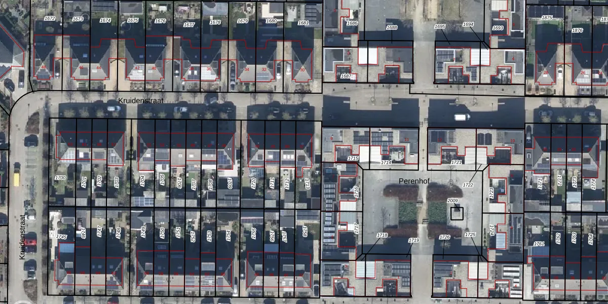 Het perceel waarop Kruidenstraat 37 staat heeft een oppervlakte van 245 m². Dit is een middelgroot perceel. De perceeloppervlakte wordt geregistreerd door het Kadaster. Gedetailleerde informatie over de maten van dit perceel kunt u vinden in het rapport Kadastrale kaart met maatvoering van Kruidenstraat 37.