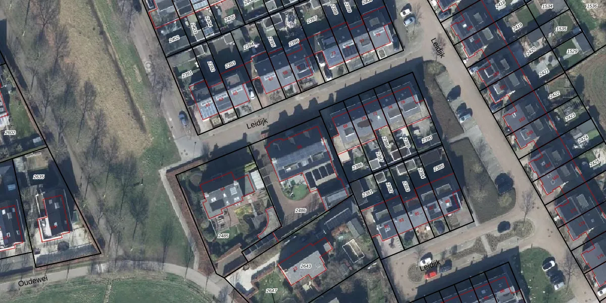 Het perceel waarop Leidijk 66 staat heeft een oppervlakte van 851 m². Dit is een groot perceel. De perceeloppervlakte wordt geregistreerd door het Kadaster. Gedetailleerde informatie over de maten van dit perceel kunt u vinden in het rapport Kadastrale kaart met maatvoering van Leidijk 66.