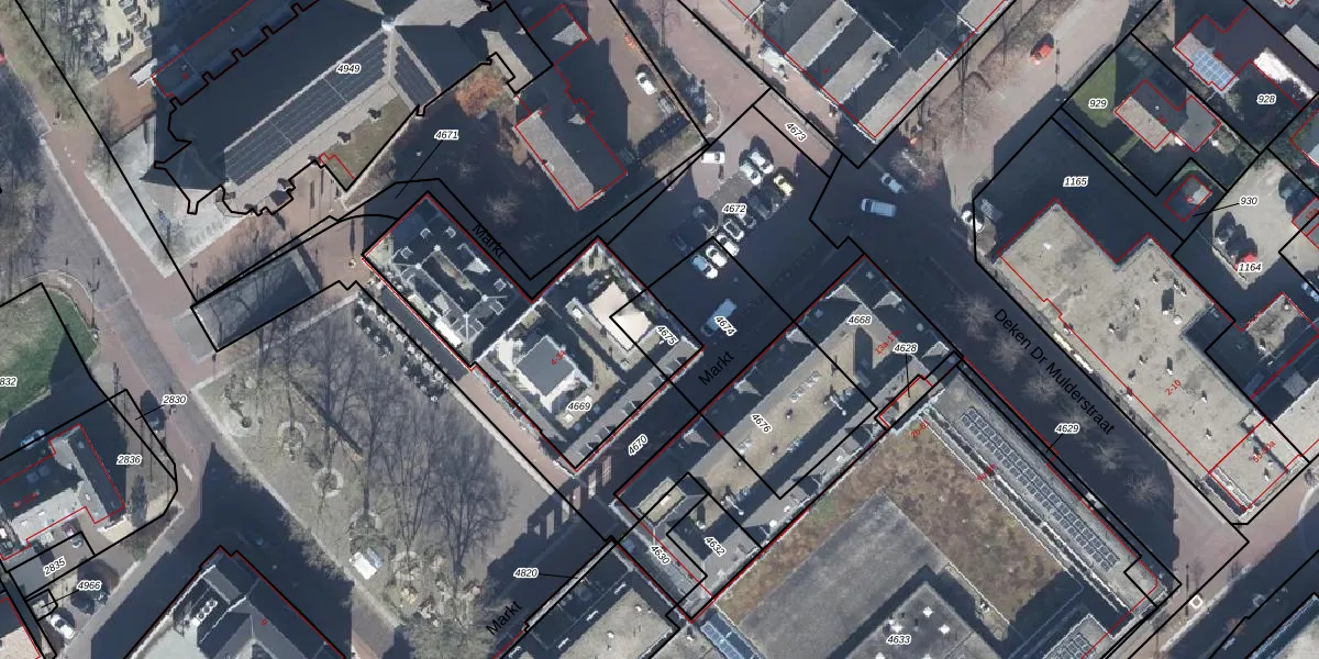 Het perceel waarop Markt 14 staat heeft een oppervlakte van 90 m². Dit is een klein perceel. De perceeloppervlakte wordt geregistreerd door het Kadaster. Gedetailleerde informatie over de maten van dit perceel kunt u vinden in het rapport Kadastrale kaart met maatvoering van Markt 14.