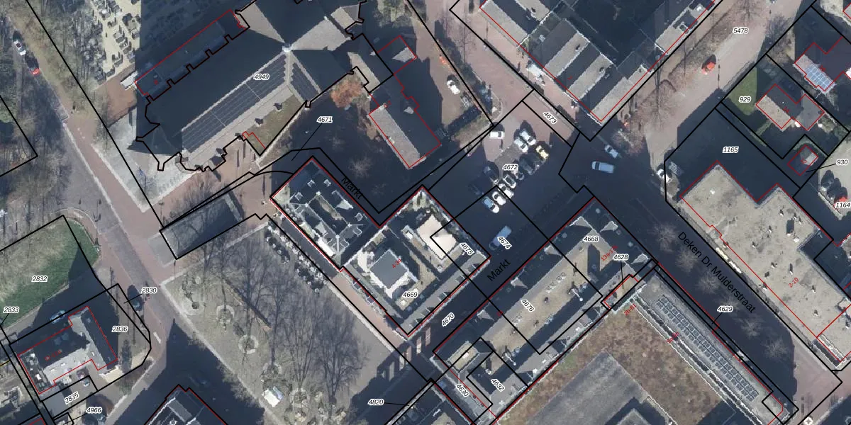 Het perceel waarop Markt 16 staat heeft een oppervlakte van 845 m². Dit is een groot perceel. De perceeloppervlakte wordt geregistreerd door het Kadaster. Gedetailleerde informatie over de maten van dit perceel kunt u vinden in het rapport Kadastrale kaart met maatvoering van Markt 16.