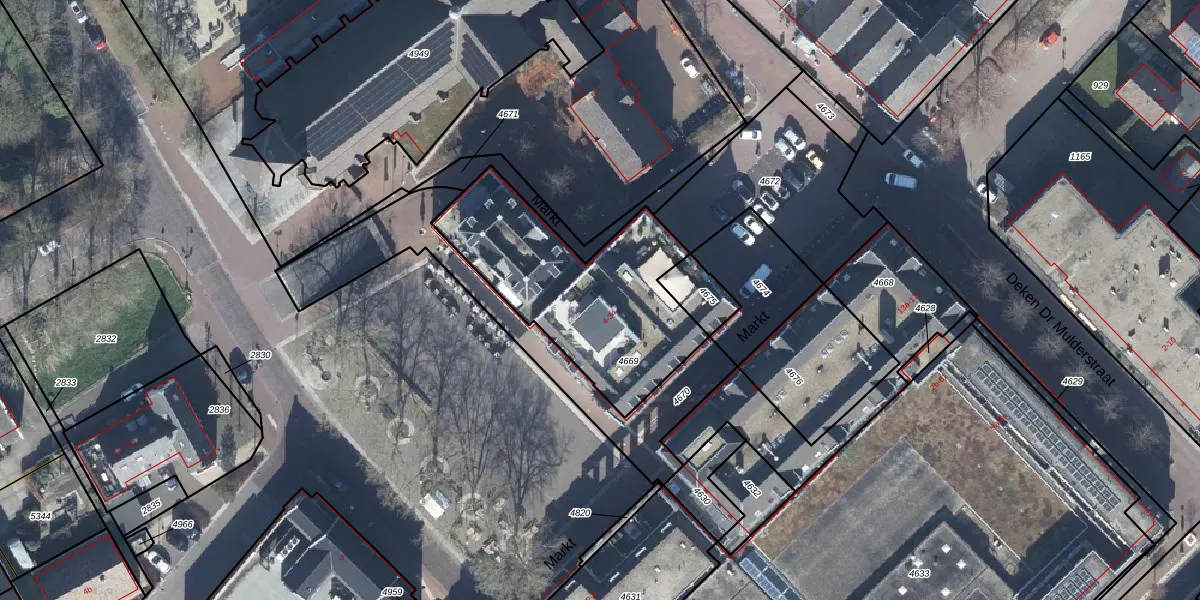 Het perceel waarop Markt 18 staat heeft een oppervlakte van 845 m². Dit is een groot perceel. De perceeloppervlakte wordt geregistreerd door het Kadaster. Gedetailleerde informatie over de maten van dit perceel kunt u vinden in het rapport Kadastrale kaart met maatvoering van Markt 18.