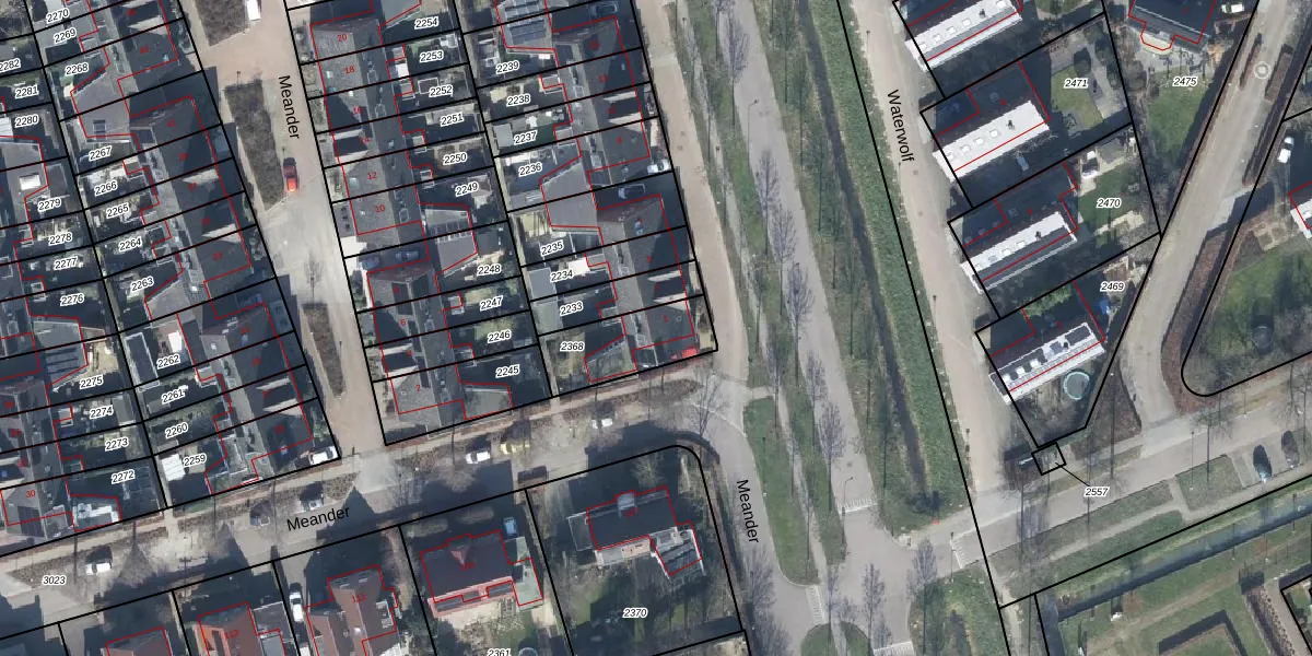 Het perceel waarop Meander 1 staat heeft een oppervlakte van 240 m². Dit is een middelgroot perceel. De perceeloppervlakte wordt geregistreerd door het Kadaster. Gedetailleerde informatie over de maten van dit perceel kunt u vinden in het rapport Kadastrale kaart met maatvoering van Meander 1.