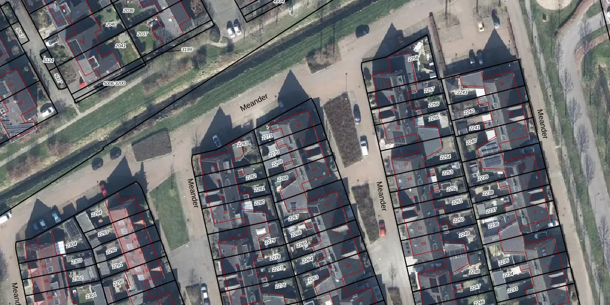 Het perceel waarop Meander 45 staat heeft een oppervlakte van 122 m². Dit is een middelgroot perceel. De perceeloppervlakte wordt geregistreerd door het Kadaster. Gedetailleerde informatie over de maten van dit perceel kunt u vinden in het rapport Kadastrale kaart met maatvoering van Meander 45.