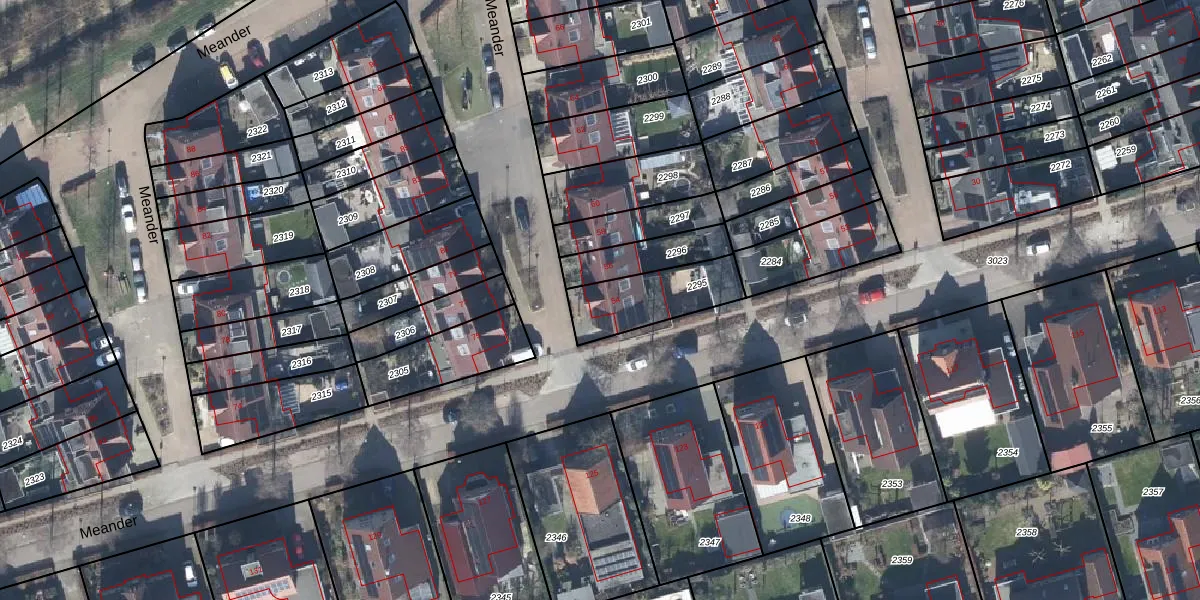 Het perceel waarop Meander 54 staat heeft een oppervlakte van 245 m². Dit is een middelgroot perceel. De perceeloppervlakte wordt geregistreerd door het Kadaster. Gedetailleerde informatie over de maten van dit perceel kunt u vinden in het rapport Kadastrale kaart met maatvoering van Meander 54.