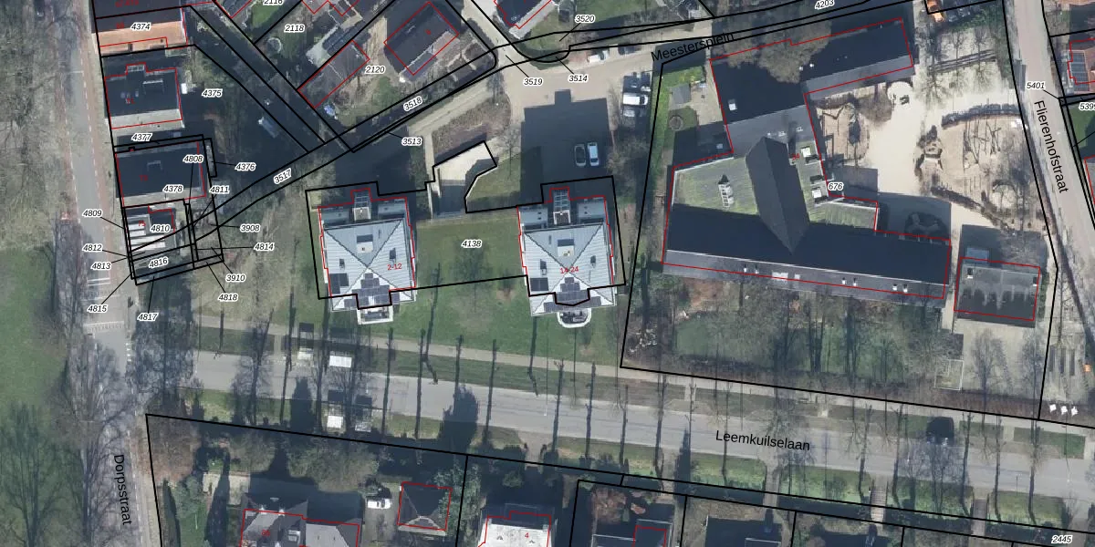 Het perceel waarop Meestersplein 18 staat heeft een oppervlakte van 1088 m². Dit is een zeer groot perceel. De perceeloppervlakte wordt geregistreerd door het Kadaster. Gedetailleerde informatie over de maten van dit perceel kunt u vinden in het rapport Kadastrale kaart met maatvoering van Meestersplein 18.
