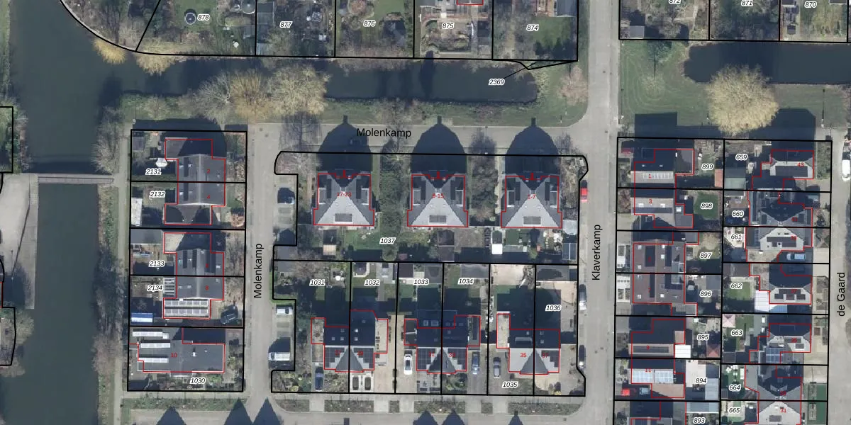 Het perceel waarop Molenkamp 15 staat heeft een oppervlakte van 1745 m². Dit is een zeer groot perceel. De perceeloppervlakte wordt geregistreerd door het Kadaster. Gedetailleerde informatie over de maten van dit perceel kunt u vinden in het rapport Kadastrale kaart met maatvoering van Molenkamp 15.
