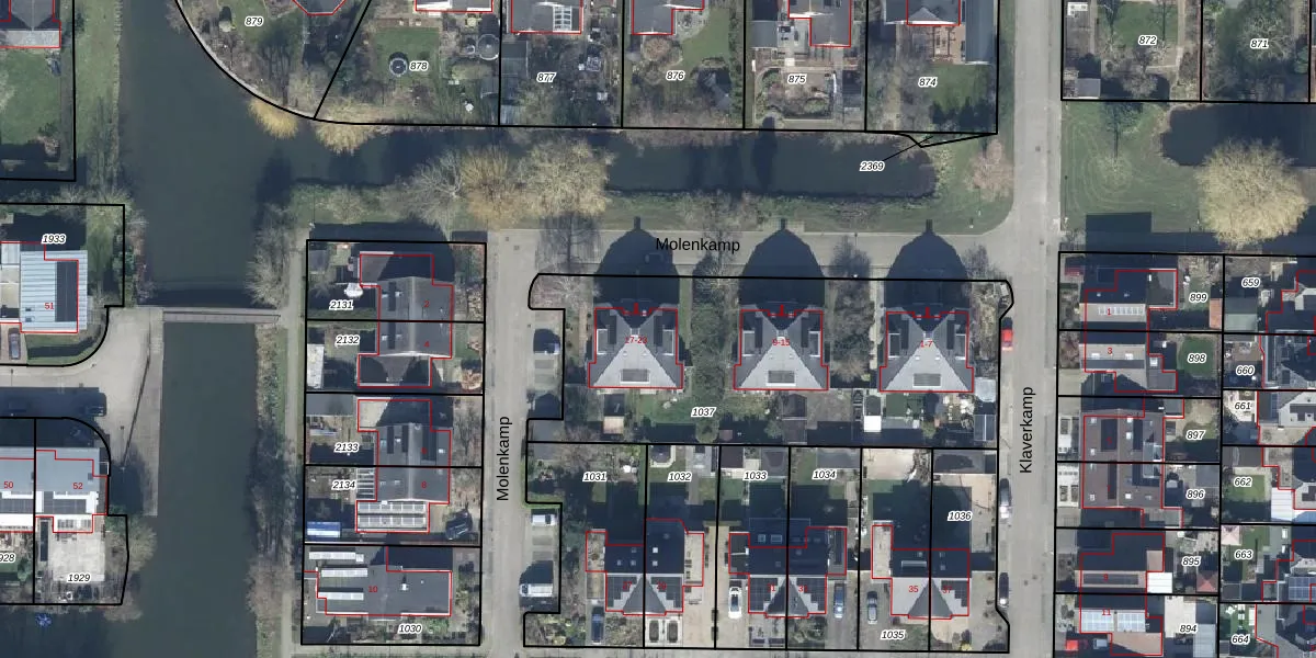 Het perceel waarop Molenkamp 17 staat heeft een oppervlakte van 1745 m². Dit is een zeer groot perceel. De perceeloppervlakte wordt geregistreerd door het Kadaster. Gedetailleerde informatie over de maten van dit perceel kunt u vinden in het rapport Kadastrale kaart met maatvoering van Molenkamp 17.
