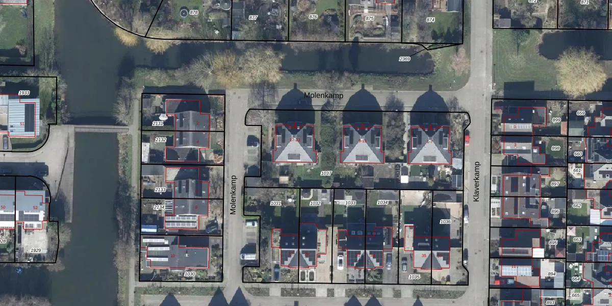 Het perceel waarop Molenkamp 19 staat heeft een oppervlakte van 1745 m². Dit is een zeer groot perceel. De perceeloppervlakte wordt geregistreerd door het Kadaster. Gedetailleerde informatie over de maten van dit perceel kunt u vinden in het rapport Kadastrale kaart met maatvoering van Molenkamp 19.