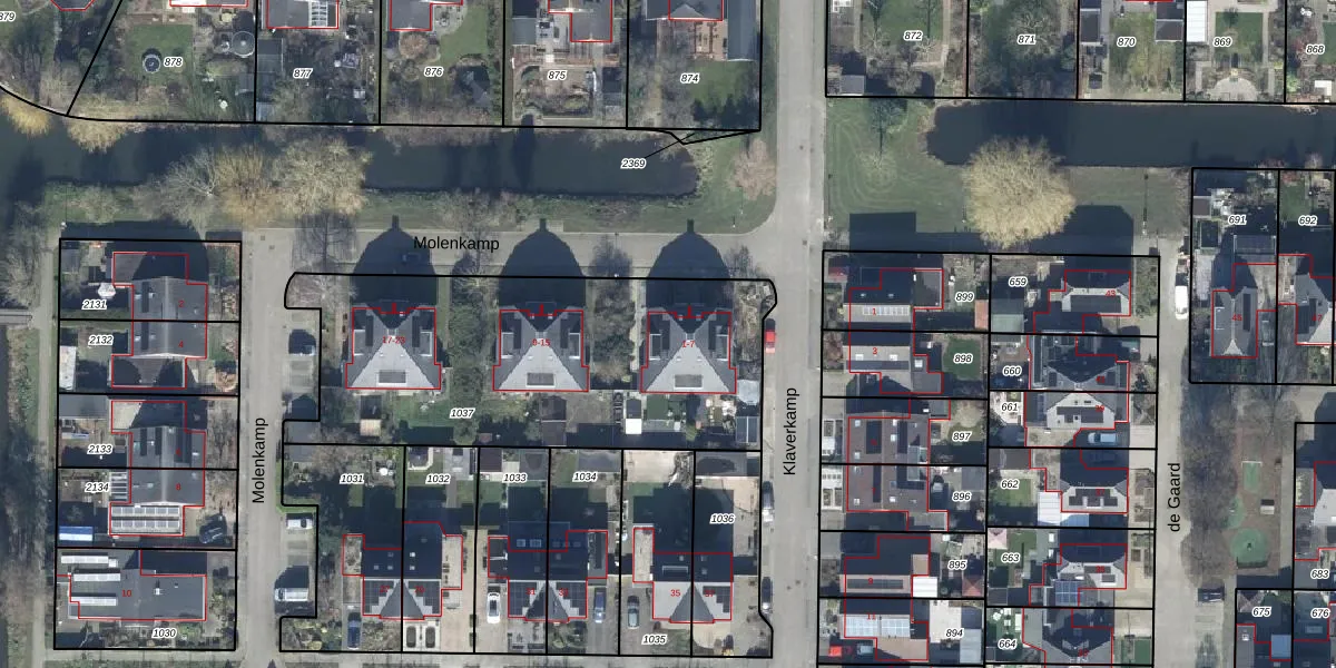Het perceel waarop Molenkamp 5 staat heeft een oppervlakte van 1745 m². Dit is een zeer groot perceel. De perceeloppervlakte wordt geregistreerd door het Kadaster. Gedetailleerde informatie over de maten van dit perceel kunt u vinden in het rapport Kadastrale kaart met maatvoering van Molenkamp 5.