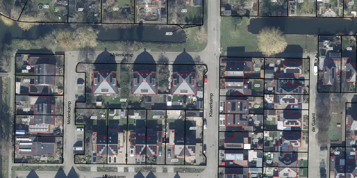 Het perceel waarop Molenkamp 7 staat heeft een oppervlakte van 1745 m². Dit is een zeer groot perceel. De perceeloppervlakte wordt geregistreerd door het Kadaster. Gedetailleerde informatie over de maten van dit perceel kunt u vinden in het rapport Kadastrale kaart met maatvoering van Molenkamp 7.