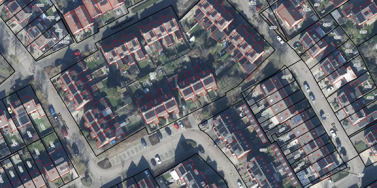 Het perceel waarop Moutlaan 38 staat heeft een oppervlakte van 5410 m². Dit is een zeer groot perceel. De perceeloppervlakte wordt geregistreerd door het Kadaster. Gedetailleerde informatie over de maten van dit perceel kunt u vinden in het rapport Kadastrale kaart met maatvoering van Moutlaan 38.