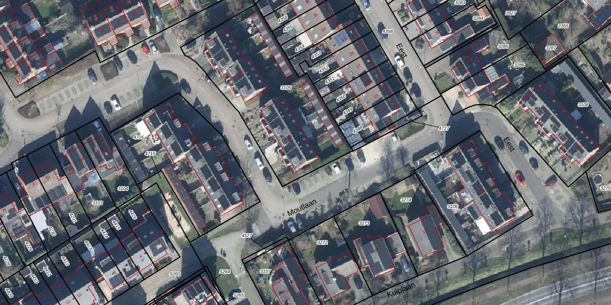 Moutlaan 4 is gelegen op kadastraal perceel BML02H3105. Deze kadastrale aanduiding is uniek en wordt gebruikt door het Kadaster om eigendomsrechten en andere zakelijke rechten vast te leggen. Het perceel maakt onderdeel uit van de kadastrale gemeente Bemmel.