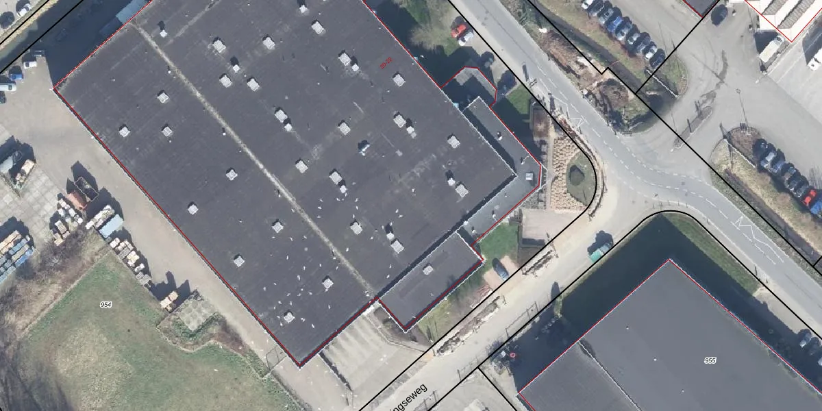 Het perceel waarop Nijverheidstraat 22 staat heeft een oppervlakte van 1,8 ha. Dit is een zeer groot perceel. De perceeloppervlakte wordt geregistreerd door het Kadaster. Gedetailleerde informatie over de maten van dit perceel kunt u vinden in het rapport Kadastrale kaart met maatvoering van Nijverheidstraat 22.