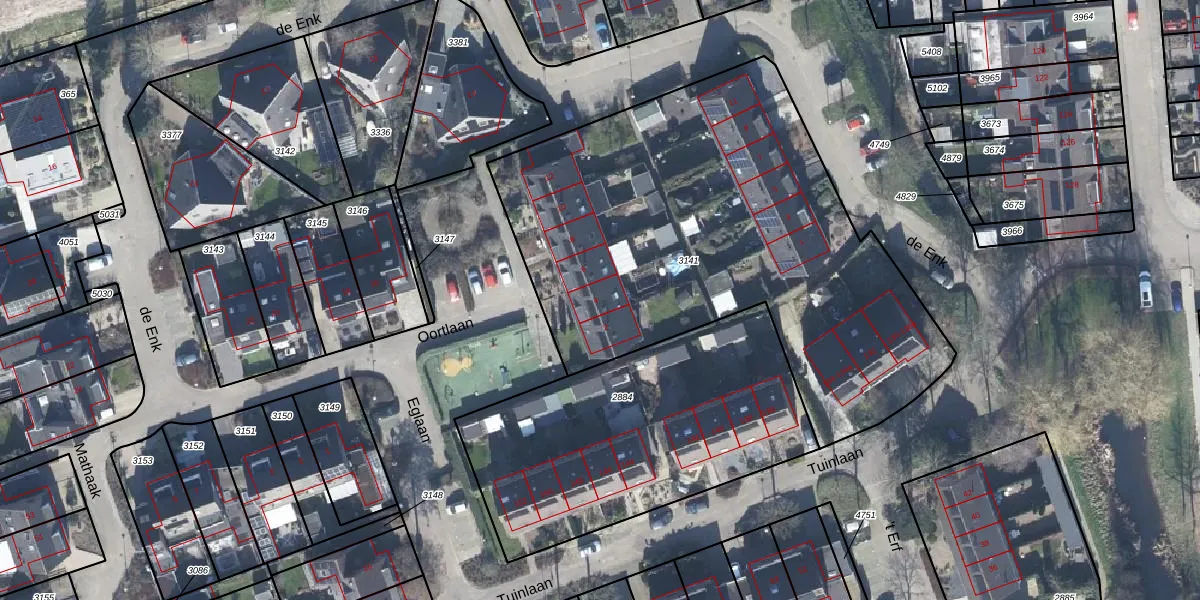 Het perceel waarop Oortlaan 4 staat heeft een oppervlakte van 2617 m². Dit is een zeer groot perceel. De perceeloppervlakte wordt geregistreerd door het Kadaster. Gedetailleerde informatie over de maten van dit perceel kunt u vinden in het rapport Kadastrale kaart met maatvoering van Oortlaan 4.