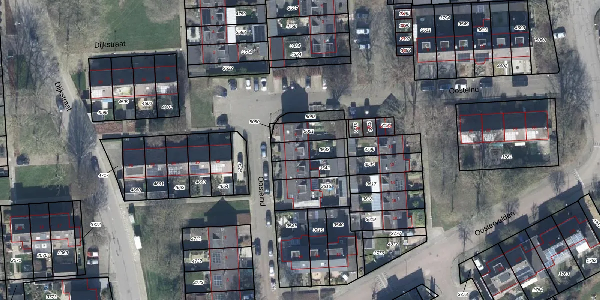 Het perceel waarop Oosteind 6 staat heeft een oppervlakte van 155 m². Dit is een middelgroot perceel. De perceeloppervlakte wordt geregistreerd door het Kadaster. Gedetailleerde informatie over de maten van dit perceel kunt u vinden in het rapport Kadastrale kaart met maatvoering van Oosteind 6.
