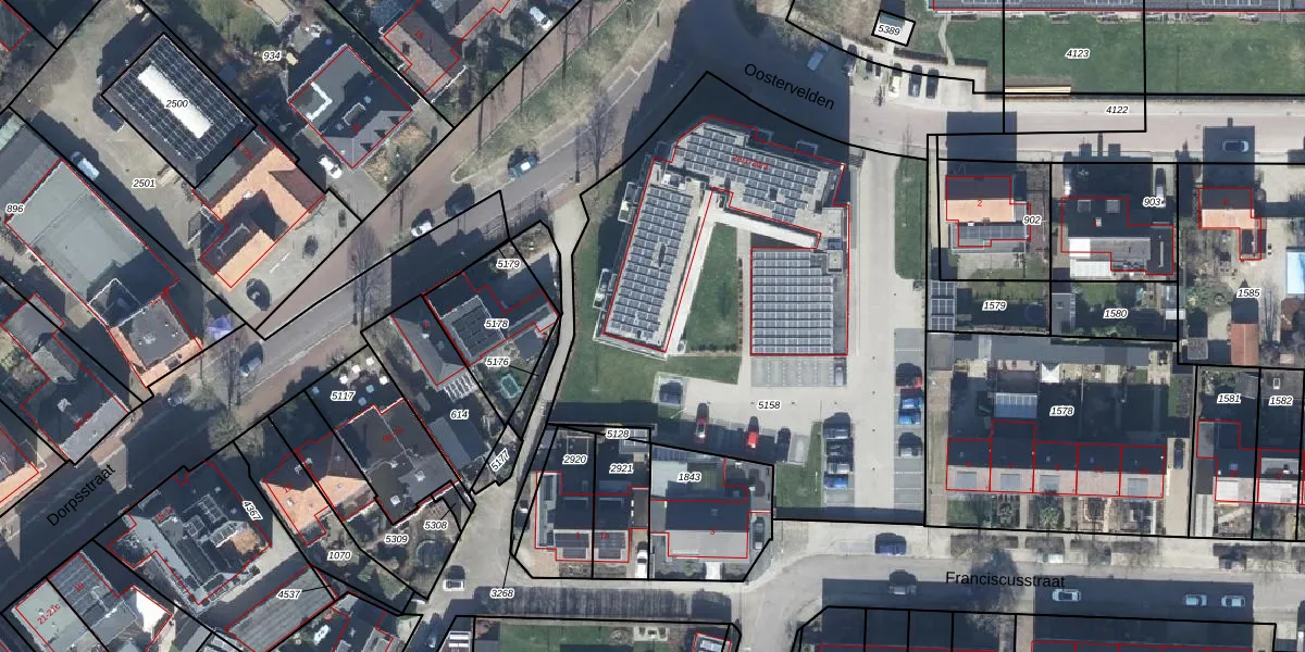 Het perceel waarop Oostervelden 2-a-7 staat heeft een oppervlakte van 2880 m². Dit is een zeer groot perceel. De perceeloppervlakte wordt geregistreerd door het Kadaster. Gedetailleerde informatie over de maten van dit perceel kunt u vinden in het rapport Kadastrale kaart met maatvoering van Oostervelden 2-a-7.