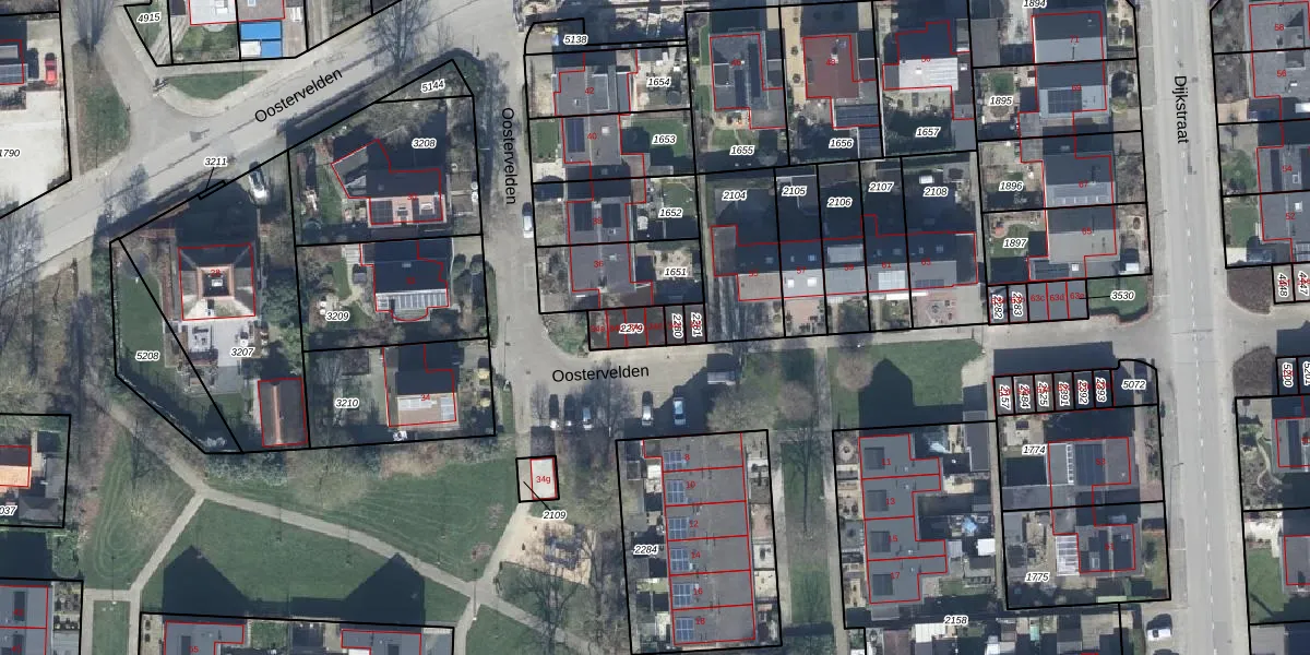 Het perceel waarop Oostervelden 34-d staat heeft een oppervlakte van 71 m². Dit is een klein perceel. De perceeloppervlakte wordt geregistreerd door het Kadaster. Gedetailleerde informatie over de maten van dit perceel kunt u vinden in het rapport Kadastrale kaart met maatvoering van Oostervelden 34-d.