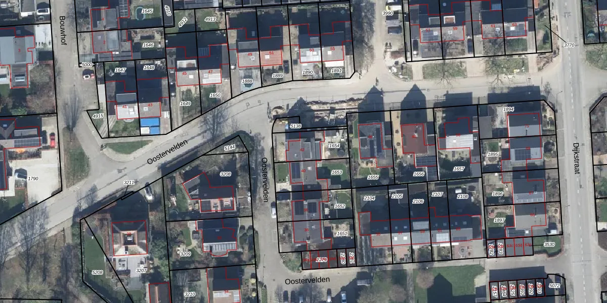 Gebruik de zoekbalk of klik op een perceel voor informatie over de adressen binnen dit perceel.