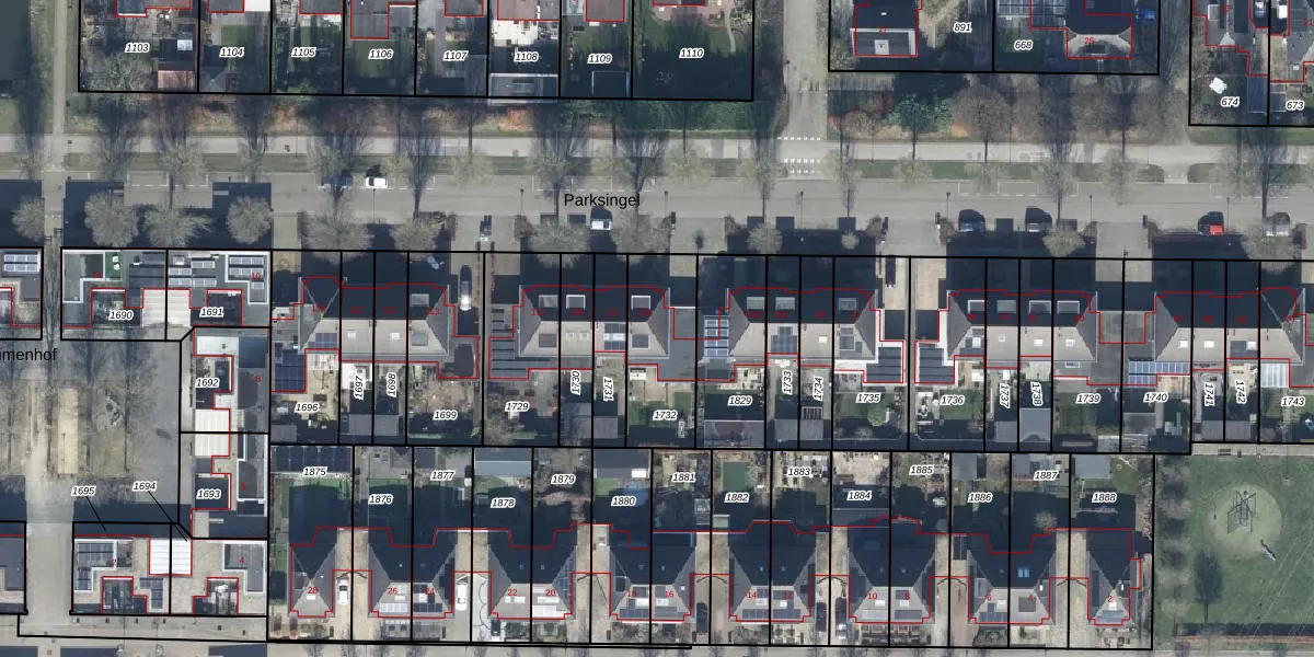 Het perceel waarop Parksingel 105 staat heeft een oppervlakte van 315 m². Dit is een groot perceel. De perceeloppervlakte wordt geregistreerd door het Kadaster. Gedetailleerde informatie over de maten van dit perceel kunt u vinden in het rapport Kadastrale kaart met maatvoering van Parksingel 105.