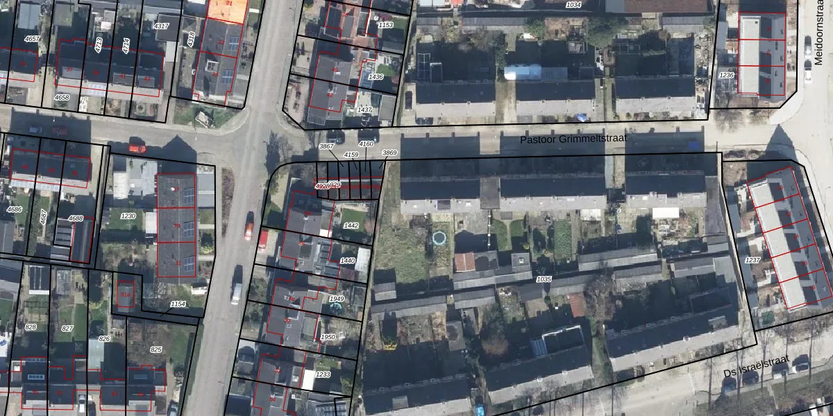 Het perceel waarop Pastoor Grimmeltstraat 54 staat heeft een oppervlakte van 5375 m². Dit is een zeer groot perceel. De perceeloppervlakte wordt geregistreerd door het Kadaster. Gedetailleerde informatie over de maten van dit perceel kunt u vinden in het rapport Kadastrale kaart met maatvoering van Pastoor Grimmeltstraat 54.