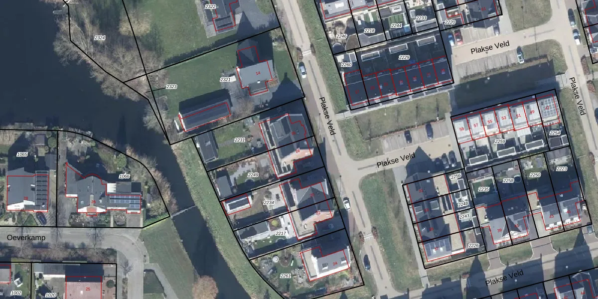 Gebruik de zoekbalk of klik op een perceel voor informatie over de adressen binnen dit perceel.