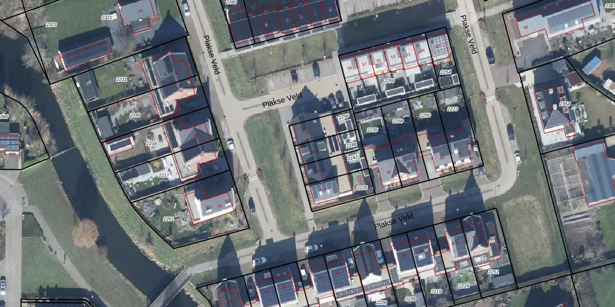 Gebruik de zoekbalk of klik op een perceel voor informatie over de adressen binnen dit perceel.