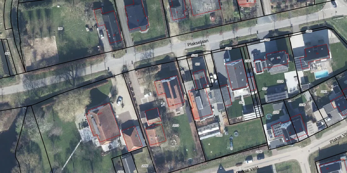 Het perceel waarop Plakselaan 7 staat heeft een oppervlakte van 1865 m². Dit is een zeer groot perceel. De perceeloppervlakte wordt geregistreerd door het Kadaster. Gedetailleerde informatie over de maten van dit perceel kunt u vinden in het rapport Kadastrale kaart met maatvoering van Plakselaan 7.