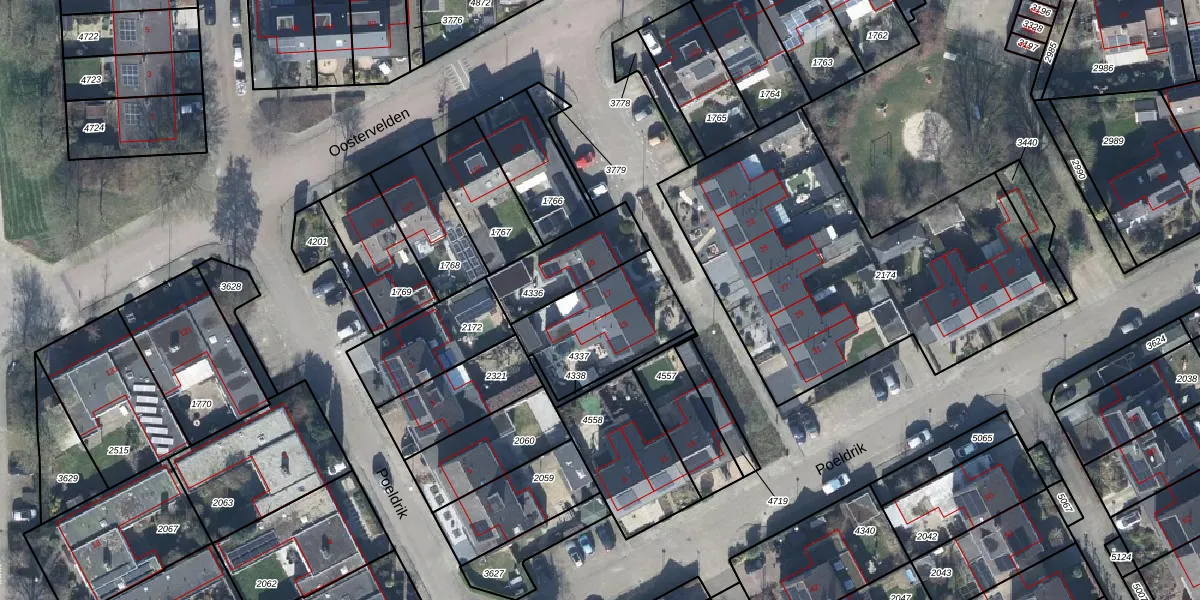 Het perceel waarop Poeldrik 17 staat heeft een oppervlakte van 398 m². Dit is een groot perceel. De perceeloppervlakte wordt geregistreerd door het Kadaster. Gedetailleerde informatie over de maten van dit perceel kunt u vinden in het rapport Kadastrale kaart met maatvoering van Poeldrik 17.