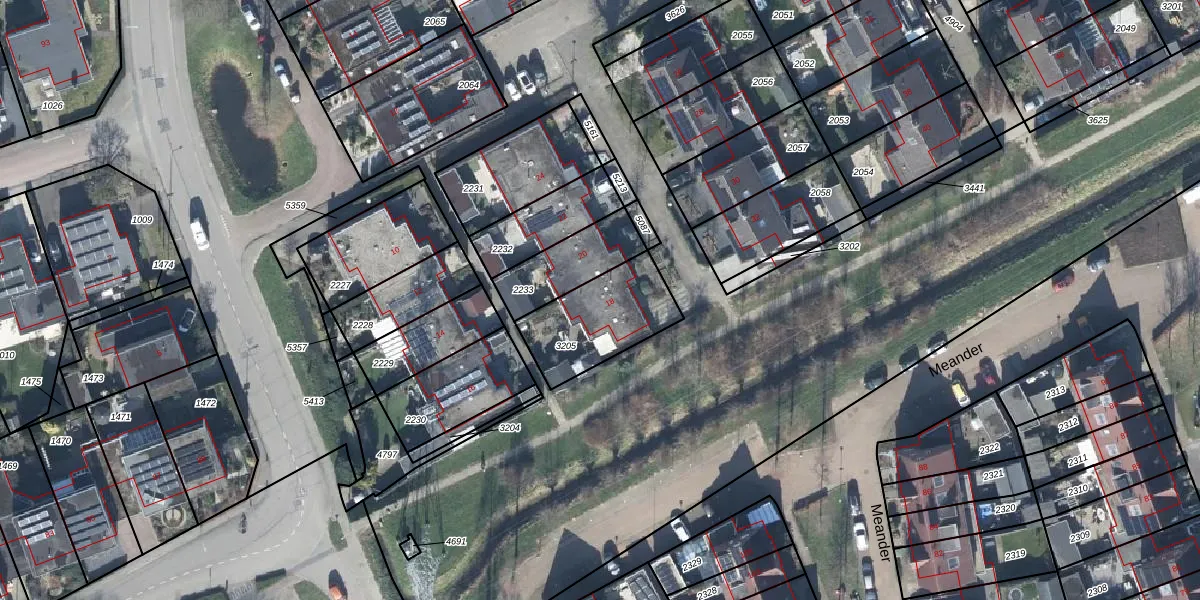 Gebruik de zoekbalk of klik op een perceel voor informatie over de adressen binnen dit perceel.