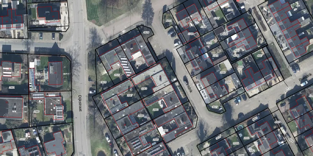Gebruik de zoekbalk of klik op een perceel voor informatie over de adressen binnen dit perceel.