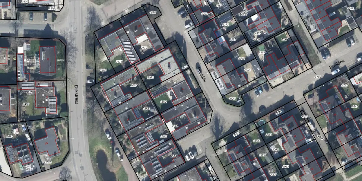 Het perceel waarop Poeldrik 4 staat heeft een oppervlakte van 396 m². Dit is een groot perceel. De perceeloppervlakte wordt geregistreerd door het Kadaster. Gedetailleerde informatie over de maten van dit perceel kunt u vinden in het rapport Kadastrale kaart met maatvoering van Poeldrik 4.