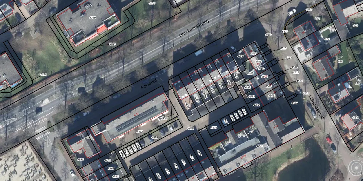 Gebruik de zoekbalk of klik op een perceel voor informatie over de adressen binnen dit perceel.